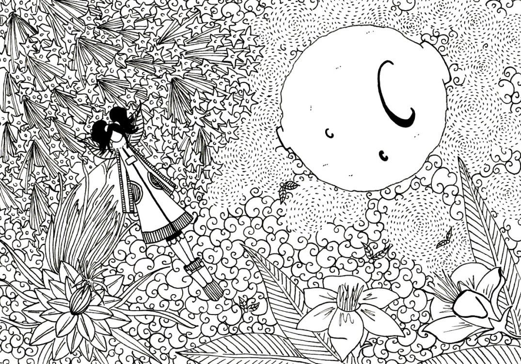 En ese jardín vivía Dama, una criatura encantadora de los hombres hoja. Se esmeraba en despertar a las flores para que admiraran la luna y se bañaran con su luz.